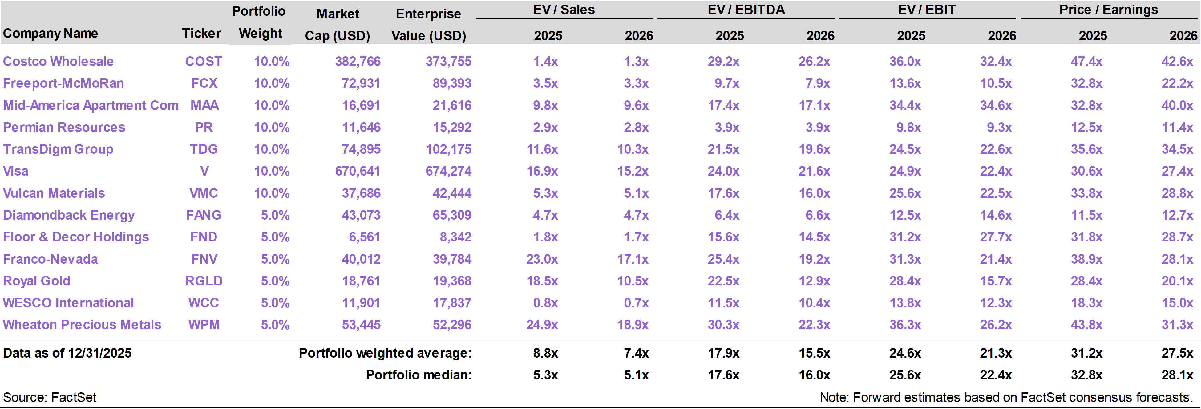 The portfolio’s worst performers were WESCO International (WCC), which returned -8%, and Costco (COST), which returned -6%. |